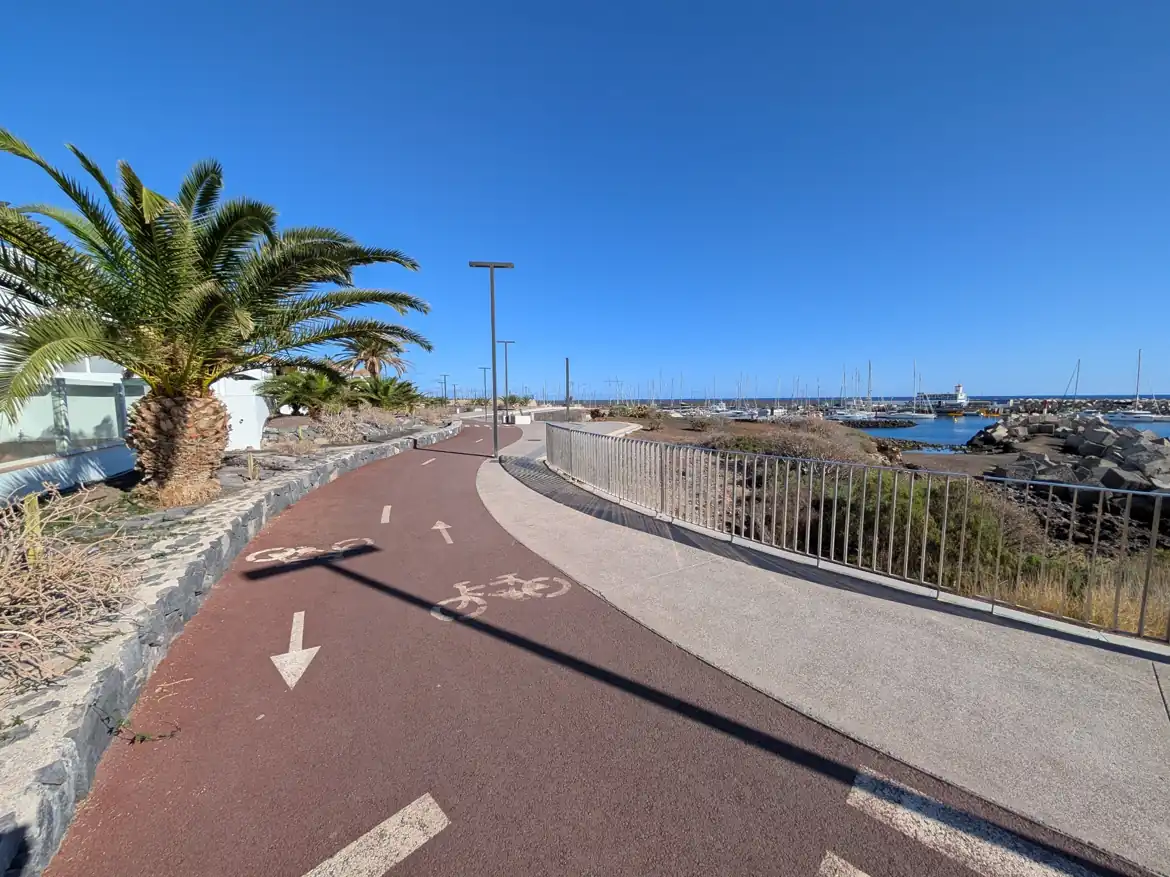 The newly built section of the promenade begins above the marina in Golf del Sur and continues towards Costa del Silencio. The first part features a wide asphalt cycling path with panoramic views, running past the Amarilla Golf course.
