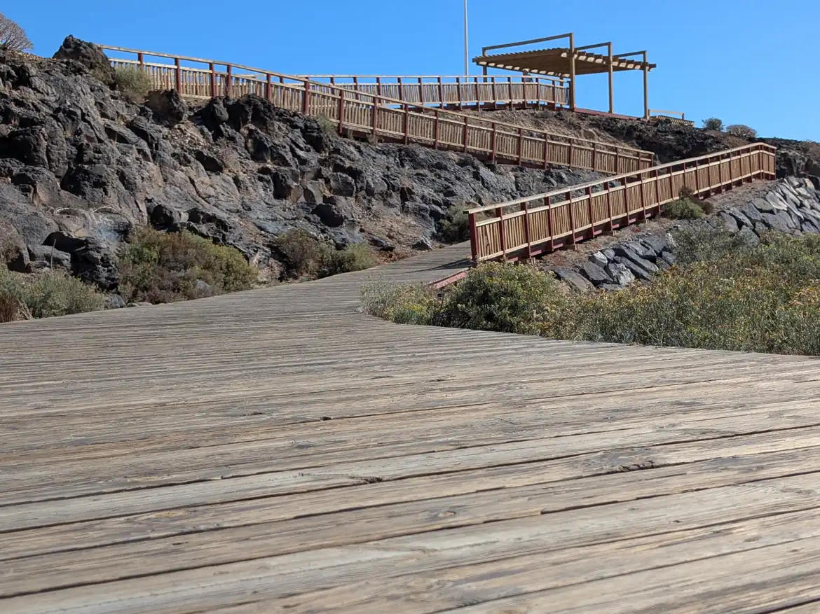 Beyond it, the surface changes into a gravel coastal path with railings, later narrowing into a scenic trail that leads all the way to the Costa del Silencio coastline or the striking Montaña Amarilla. The entire walk takes about one hour, offering unforgettable views of the cliffs and ocean.